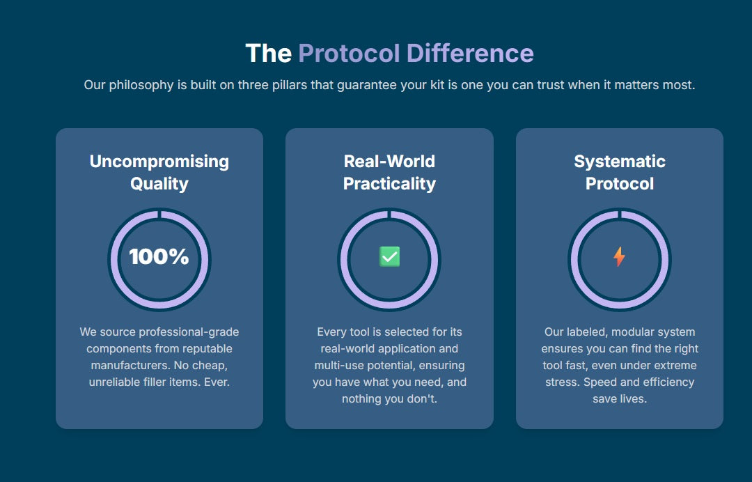 Protocol Kit Co. Delivers high-end survival gear and step-by-step training every month. Build your ultimate emergency kit.